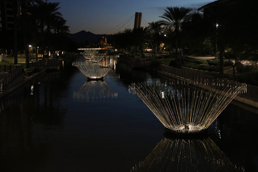 As part of the ‘Scottsdale Public Art at Scottsdale Waterfront’ program of art Munro presented his work, Blooms from November 1 – 11 April 2016.