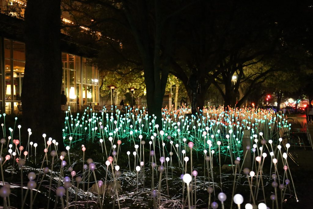 Munro’s installation Field of Light (the first public artwork to be selected and presented by Discovery Green Conservancy’s now established fine art committee), returned to Houston for a second time on 24 November 2015.