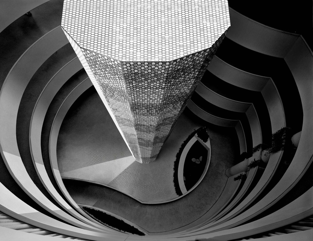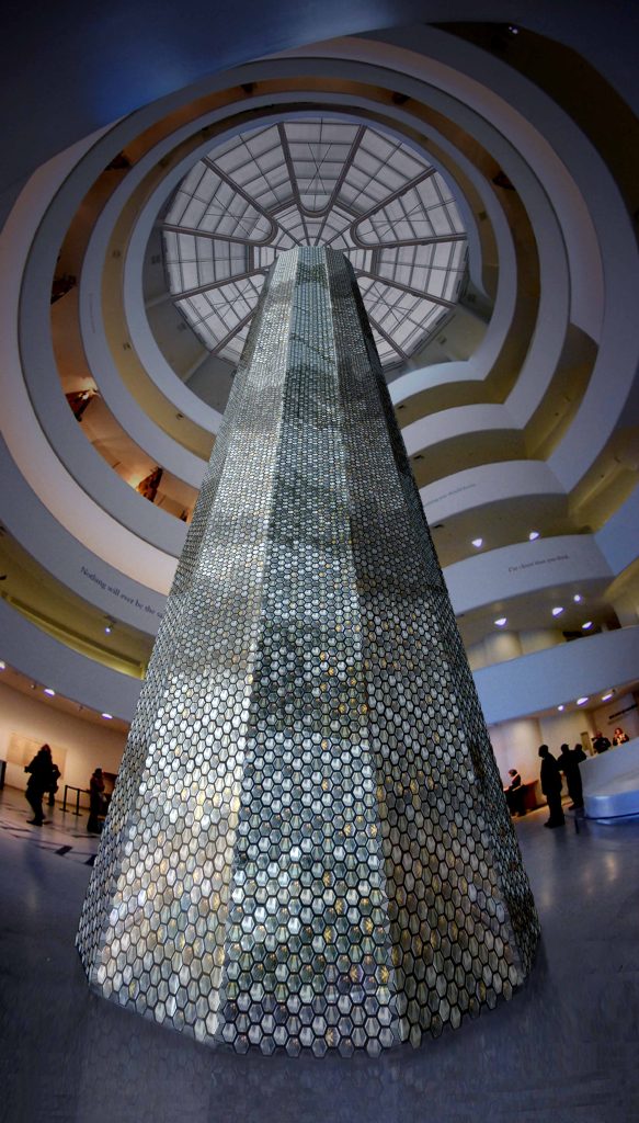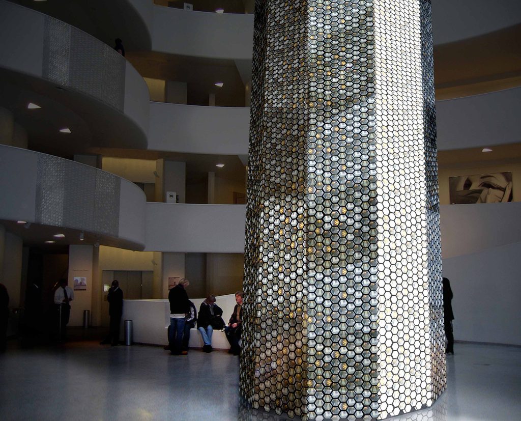 In celebration of its 50th anniversary Bruce Munro was among a group of artists invited by the Guggenheim Museum to imagine their dream interventions in the inspirational rotunda of the Frank Lloyd Wright–designed Guggenheim building. The exhibition Contemplating the Void: Interventions in the Guggenheim Museum was curated by Nancy Spector, Deputy Director and Chief Curator, and David van der Leer, Assistant Curator for Architecture and Design, the exhibition featured renderings of these visionary projects in a salon-style installation that emphasised the rich and diverse range of the proposals received.